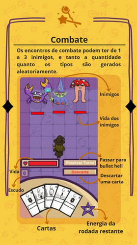 Em Arkana, você vai explorar mapas gerados aleatoriamente e enfrentar inimigos que mudam a cada encontro. A cada turno, você decide quais cartas usar, equilibrando ataques, defesas e habilidades, e depois testa seus reflexos desviando de padrões de projéteis que desafiam sua atenção.